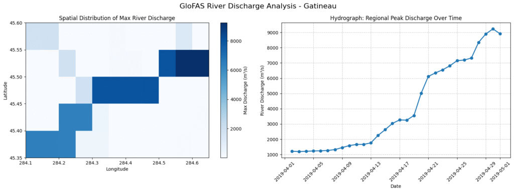 Here in my example – we’re extracting data for Ottawa-Gatineau 2019 floods, this is not necessarily the data i was aiming for my model – but i struggled finding decent global coverage for a lot of events and also a bit of lack of knowledge of terrain, urban and climatic influences, so to demonstrate the data acquisition we start at the home base.