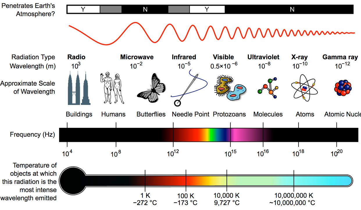 Here’s a mice overview of the electromagnetic spectrum and its scale: